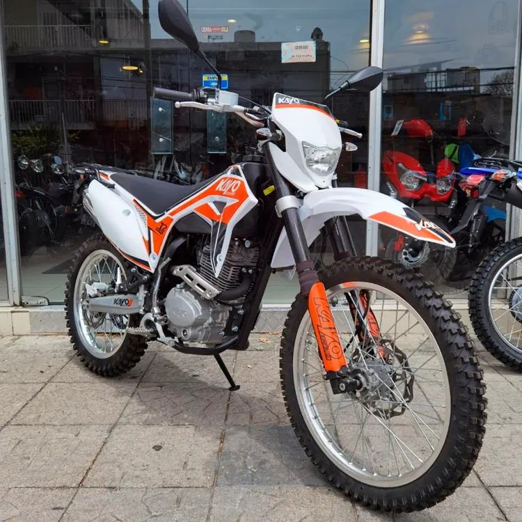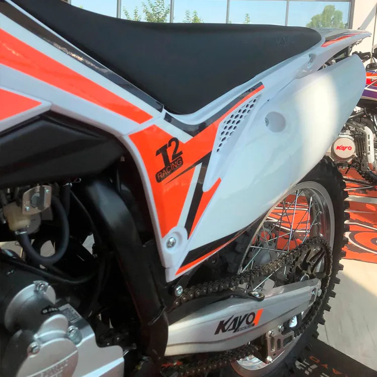 La transmisión de 5 velocidades le permite aprovechar el amplio rango de torque que ofrece este motor. La suspensión adaptada al marco resistente produce una moto de cross que está lista para recorrer los senderos.