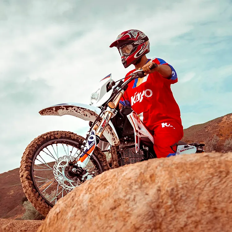 La T4 300 cuenta con una suspensión delantera ajustable de 880 mm y una trasera de 450 mm, ideales para absorber los terrenos más desafiantes. Sus neumáticos todoterreno de 21” y 18” aseguran excelente tracción en cualquier condición. Con frenos de disco delantero y trasero, un arranque eléctrico confiable y una impresionante capacidad de combustible de 10 litros, esta moto está diseñada para mantenerte en movimiento durante largas jornadas de aventura.