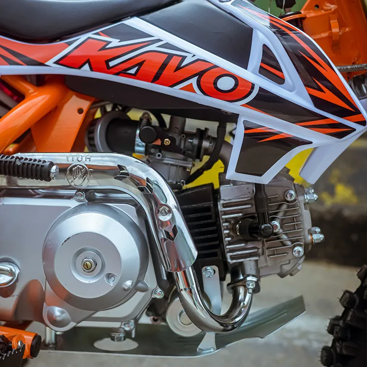 La KAYO TSD110 cuenta con un motor de 4 tiempos refrigerado por aire y una transmisión semiautomática que permite cambios precisos sin embrague. Su suspensión delantera de 630 mm y frenos hidráulicos brindan estabilidad y seguridad en terrenos desafiantes. Con un peso de solo 60 kg y ruedas de 14” y 12”, esta moto ofrece maniobrabilidad ágil y gran tracción para disfrutar cada trayecto.